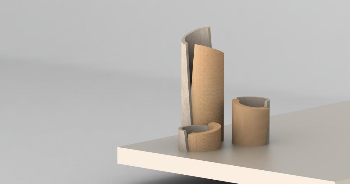 Il progetto vuole rappresentare proprio questa idea: due materiali di epoche diverse, nati in tempi lontani della storia e della natura, che oggi convivono armoniosamente nello stesso oggetto.