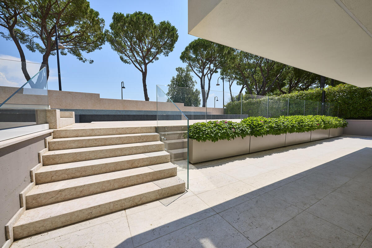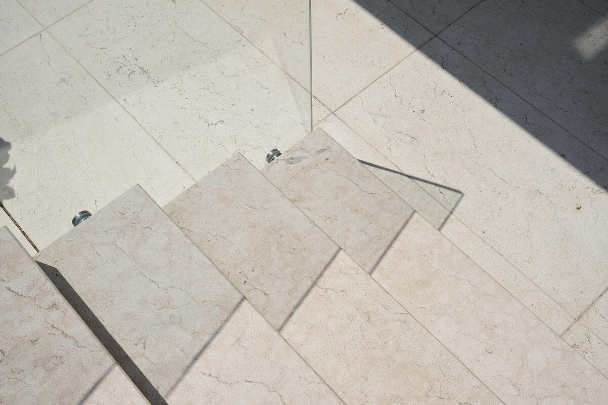 · Scale e pavimentazioni interne in Pietra della Lessinia Bianca microbocciardata e spazzolata